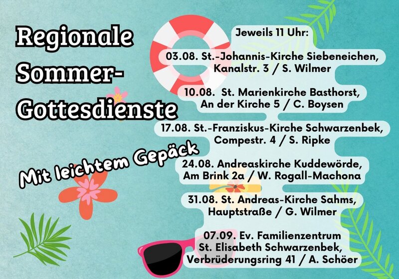 Regionale Gottesdienste im Sommer - an verschiedenen Orten - jeweils um 11 Uhr