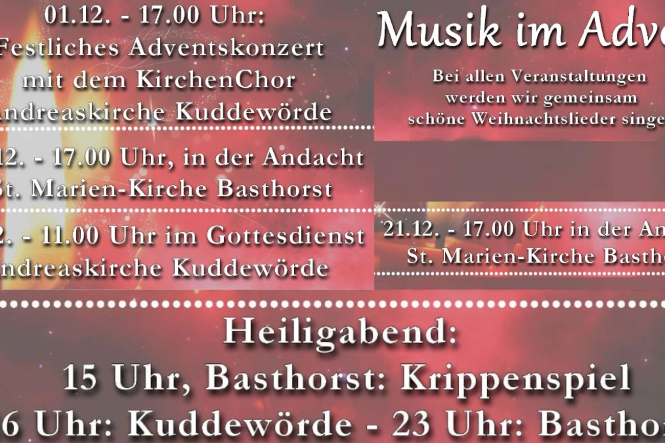 In Kuddewörde und Basthorst findet adventliche Musik für alle statt, mal als Konzert, mal im Gottesdienst.