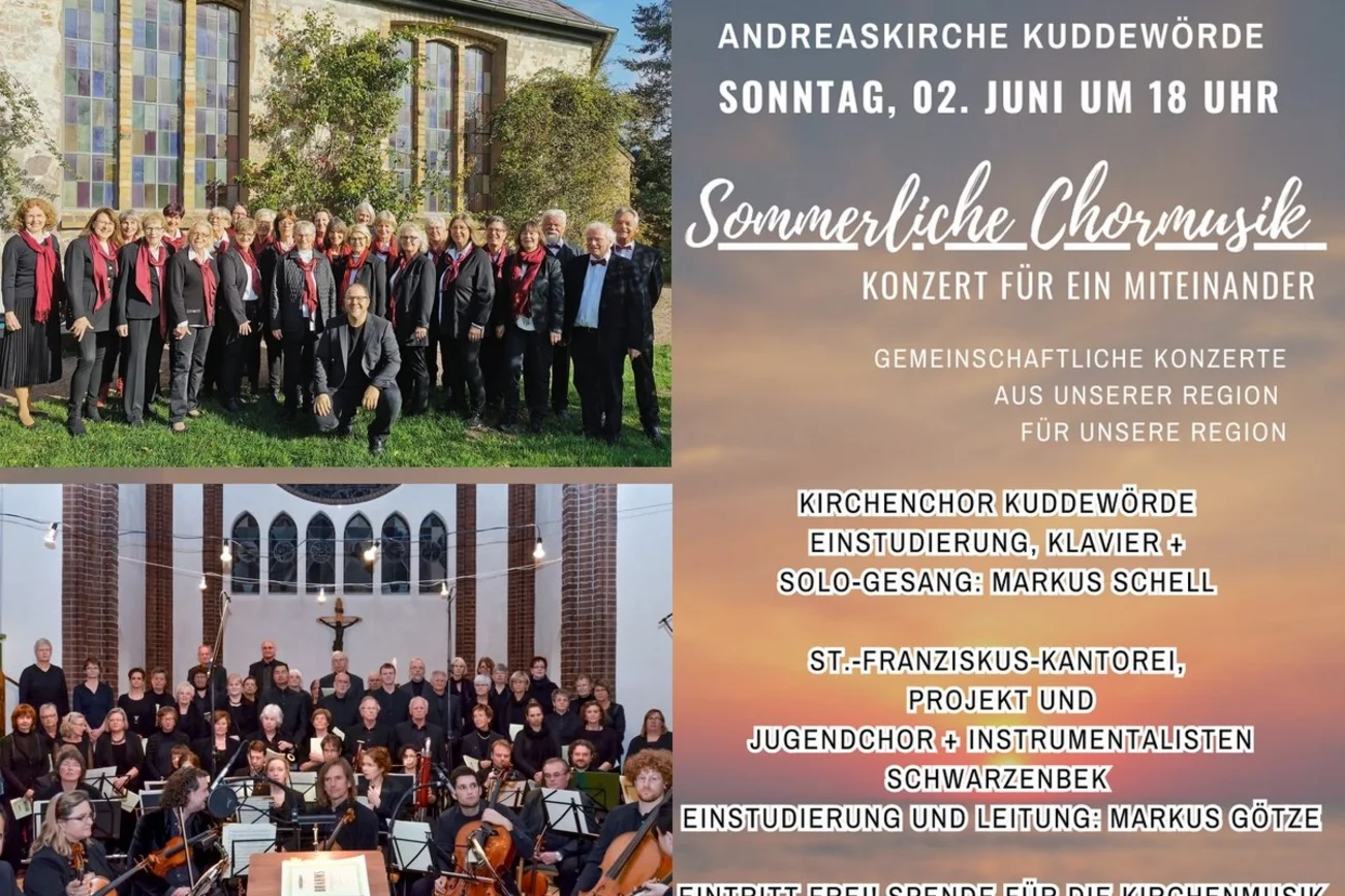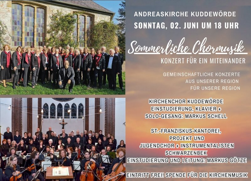 Am 2. Juni 2024 werden ab 18 Uhr in der Andreaskirche Kuddewörde viele Chorstimmen erklingen.Denn es wird ein bunt gemischtes Konzert verschiedener Chöre geben. Der KirchenChor unter der Leitung von Markus Schell wird dieses Konzert abwechselnd und gemeinsam mit Chören unter Markus Götzes Leitung gestalten.